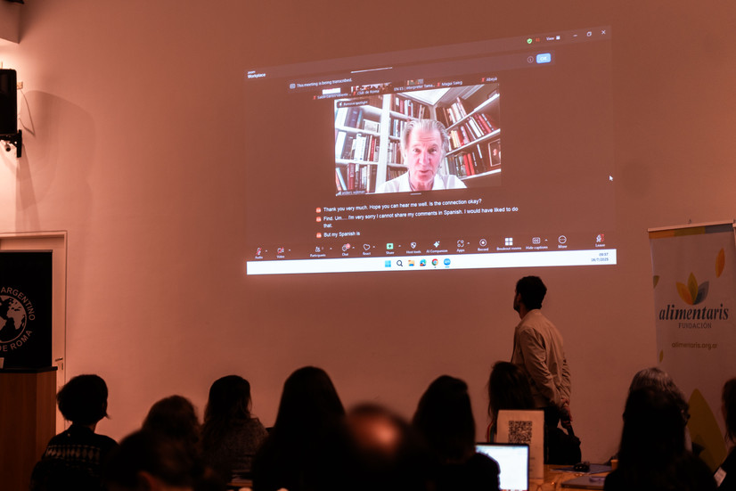 Más de cuarenta referentes de distintos sectores —académico, técnico, comunitario, institucional— participaron del evento, que comenzó con una bienvenida a cargo de Karina Bentivoglio, presidenta de Fundación Alimentaris, y Gonzalo del Castillo, director ejecutivo del Club de Roma Argentina. La apertura permitió ubicar el sentido del encuentro: hacer lugar a la escucha, al intercambio y a la posibilidad de pensar colectivamente un futuro alternativo.